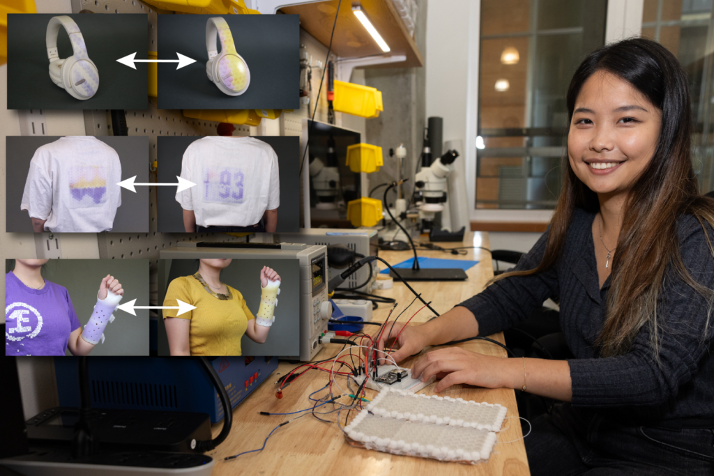 “The surfaces of our everyday things are encoded with colors and visual textures, delivering crucial information and shaping how we interact with them,” says Georgia Tech postdoc Tingyu Cheng, who was not involved with the research. “PortaChrome is taking a leap forward by providing reprogrammable surfaces with the integration of flexible light sources (UV and RGB LEDs) and photochromic pigments into everyday objects, pixelating the environment with dynamic color and patterns. The capabilities demonstrated by PortaChrome could revolutionize the way we interact with our surroundings, particularly in domains like personalized fashion and adaptive user interfaces. This technology enables real-time customization that seamlessly integrates into daily life, offering a glimpse into the future of ‘ubiquitous displays.’”