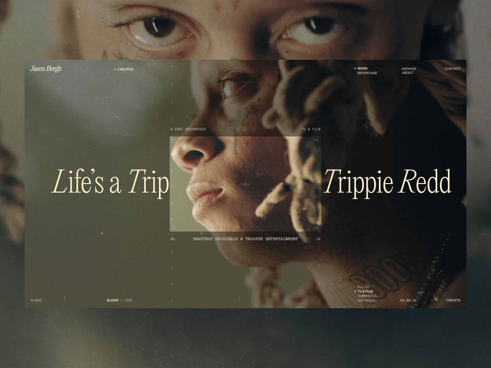 This was our most significant technical battle. Jason’s work needs to be seen in two ways: a high-impact, cinematic Slider (for mood) and a functional, fast List (for deep-diving into the archive).