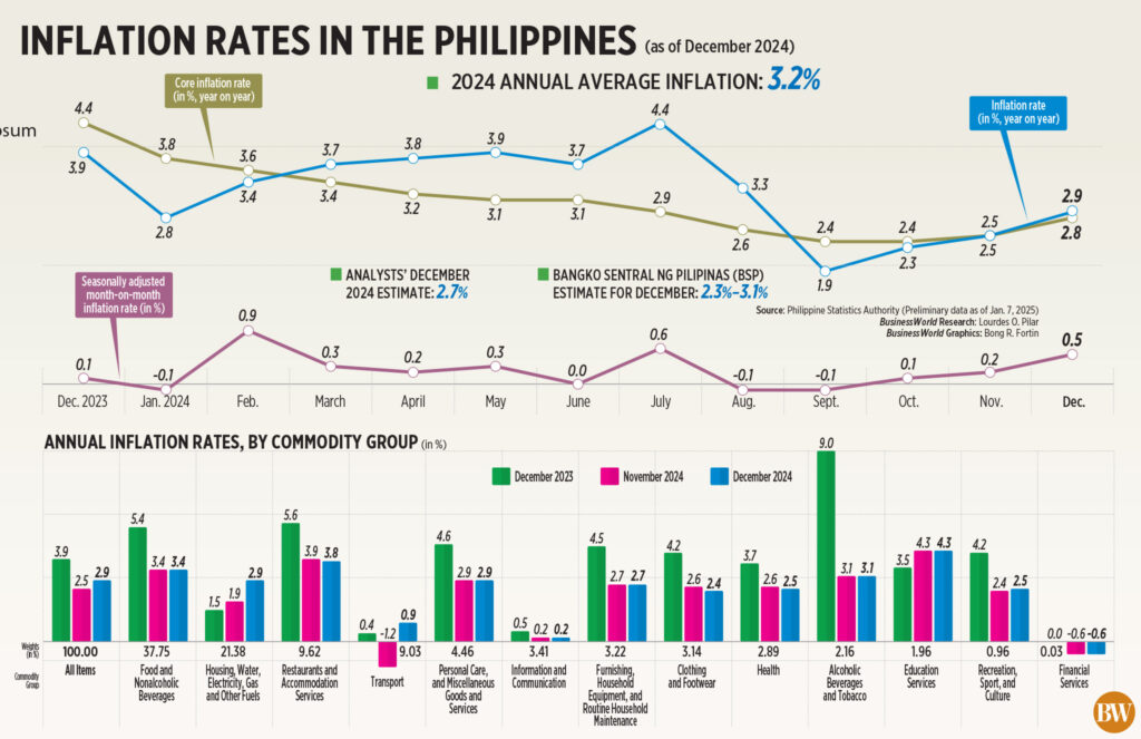 PSA data showed core inflation, which discounts volatile prices of food and fuel, stood at 2.8% in December — faster than the previous month’s 2.5% but slower than the 4.4% a year ago.