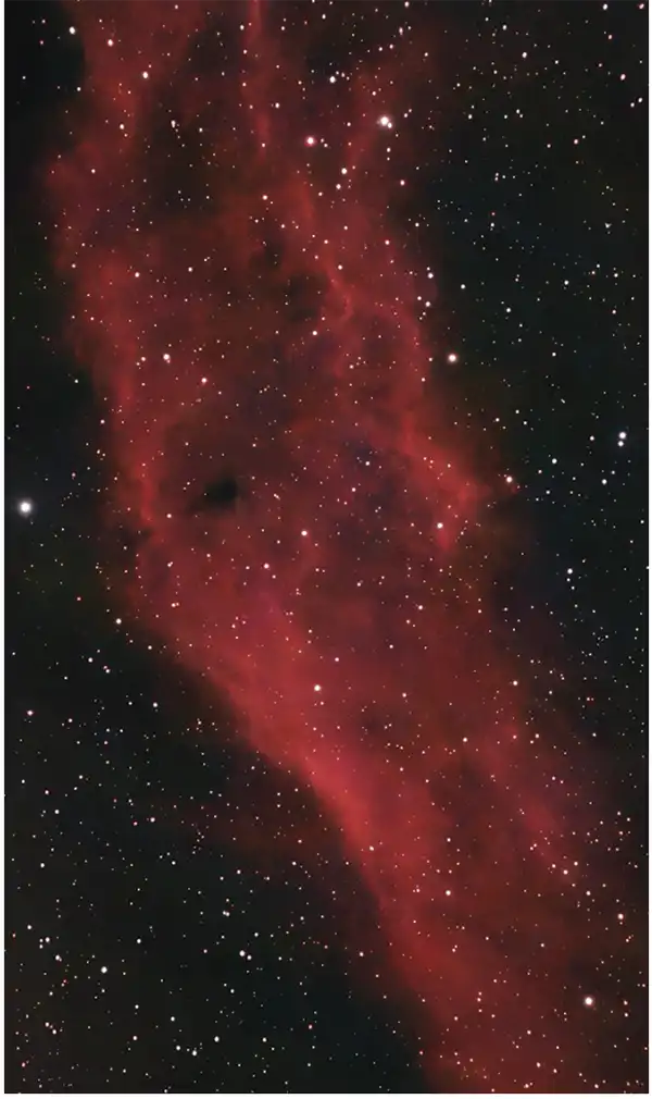 On one of my first nights with the S30, I decided to try an âimpossibleâ (at least from my yard) target: a 2½° stretch of faint emission nebulosity in Perseus known as the California Nebula, NGC 1499. Iâve never been able to produce a good photo of it from my bright Bortle 6 sky and didnât expect to with this tiny, inexpensive telescope. When the S30 stopped slewing, though, to my surprise I could see a trace of something on the live view.