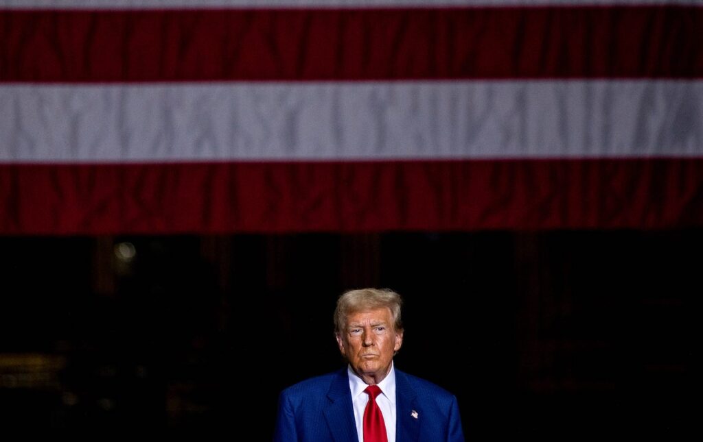 Former US president Donald Trump during a campaign event at Alro Steel in Potterville, Michigan, on August 29, 2024.