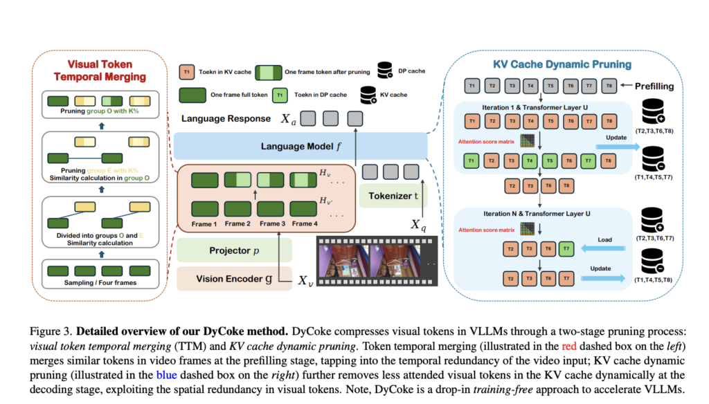 Researchers from Westlake University, Salesforce AI Research, Apple AI/ML, and Rice University introduced DyCoke, a novel method designed to dynamically compress tokens in large video language models. DyCoke adopts a training-free approach, distinguishing itself by addressing temporal and spatial redundancies in video inputs. By implementing dynamic and adaptive pruning mechanisms, the method optimizes computational efficiency while preserving high performance. This innovation aims to make VLLMs scalable for real-world applications without requiring fine-tuning or additional training.