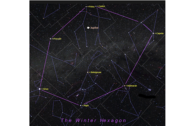 The Hexagon encompasses most of the bright “winter” stars.