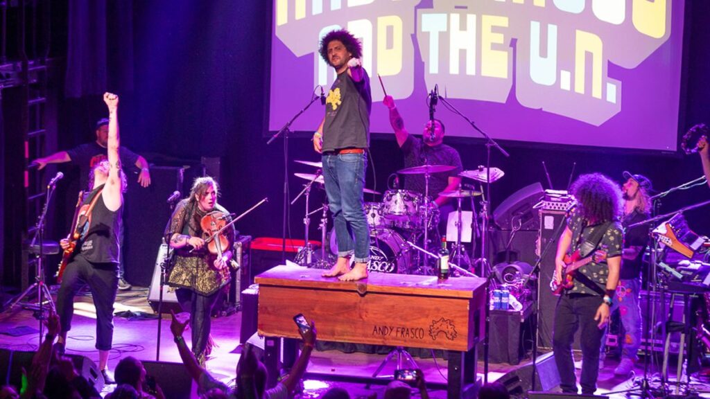 NEW YORK — Alternative rockers Andy Frasco and the U.N. were a force to be reckoned with on the stage of Irving Plaza on Friday night (Feb. 28), energetically blasting through a set of original songs to a packed crowd.